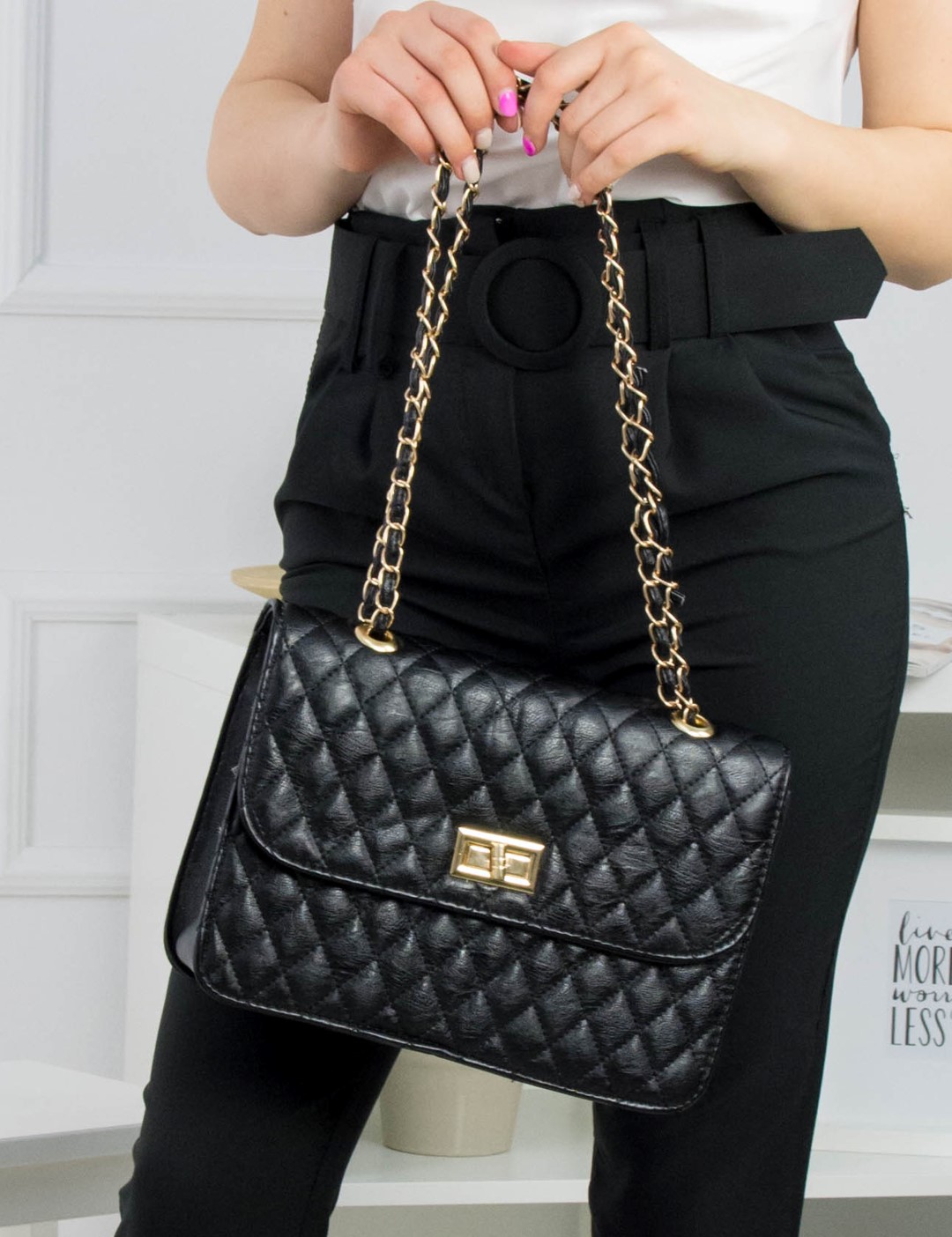 €89.00Γυναικεία καπιτονέ τσάντα ώμου μαύρη δερματίνη 60662